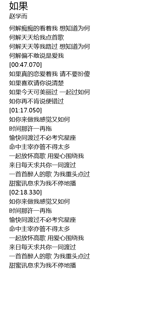 | [00:34.220] | 何解天天等我路过 想知道为何 |