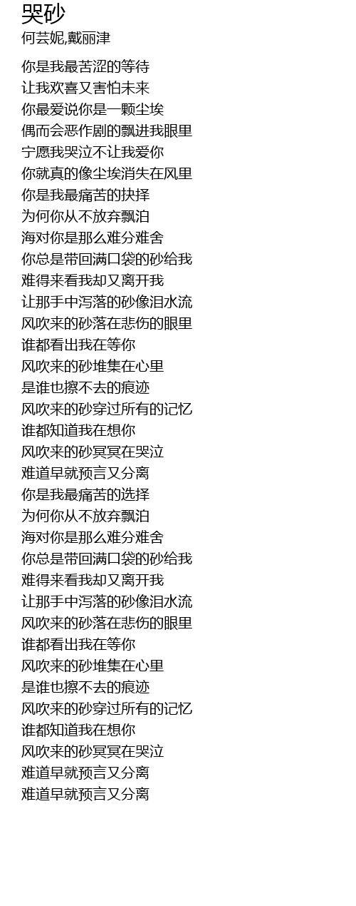| [01:35.290] | 让那手中泻落的砂像泪水流 |