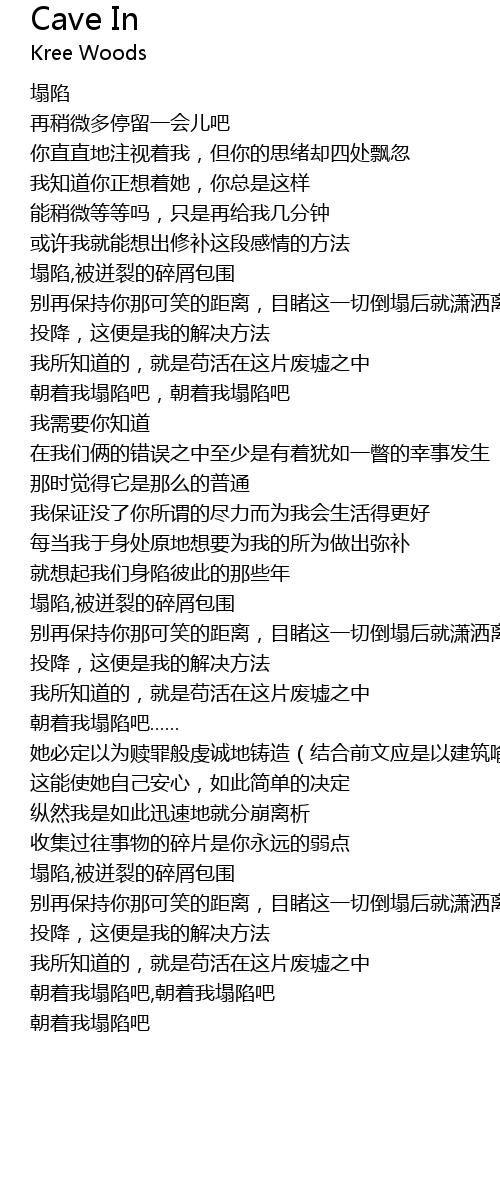 | [00:53.94] | 塌陷,被迸裂的碎屑包围 |