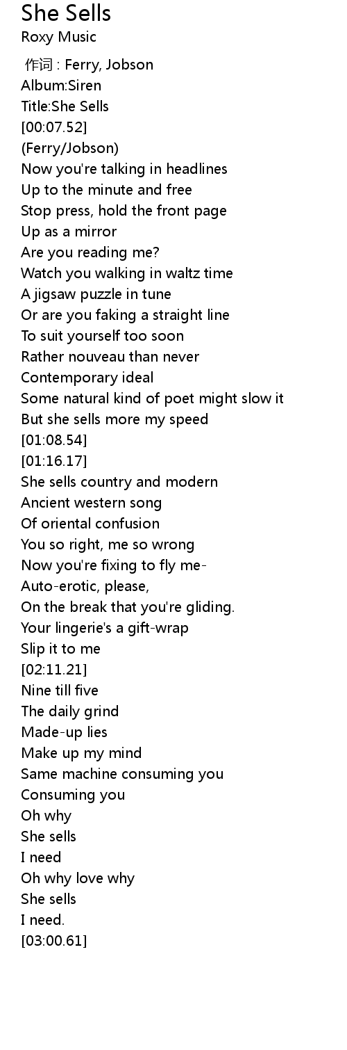 | [00:05.03] | Title:She Sells |