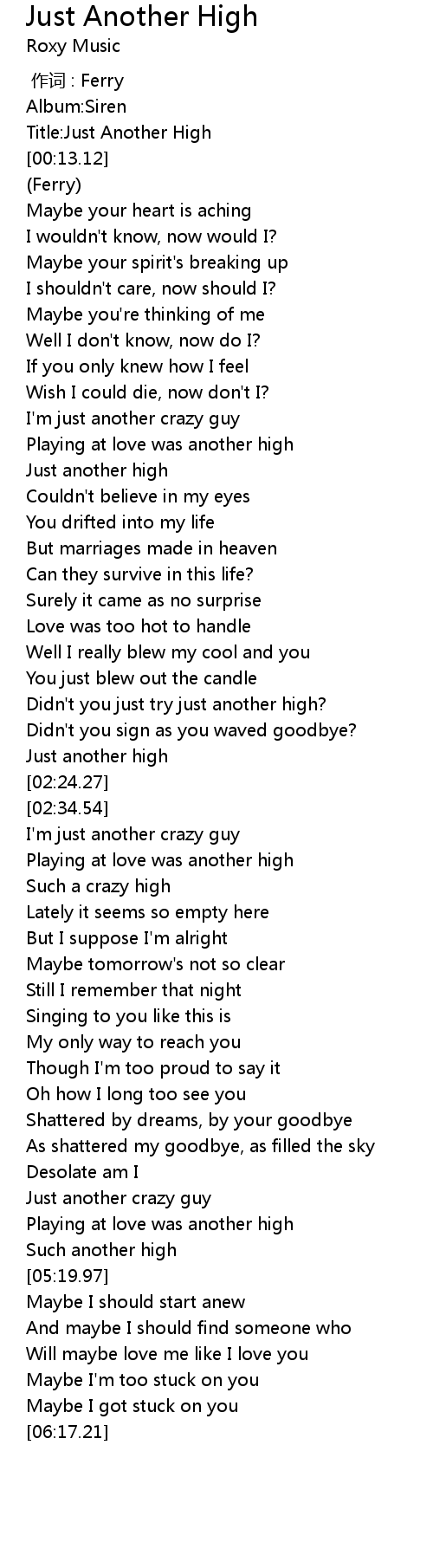 | [00:04.82] | Title:Just Another High |