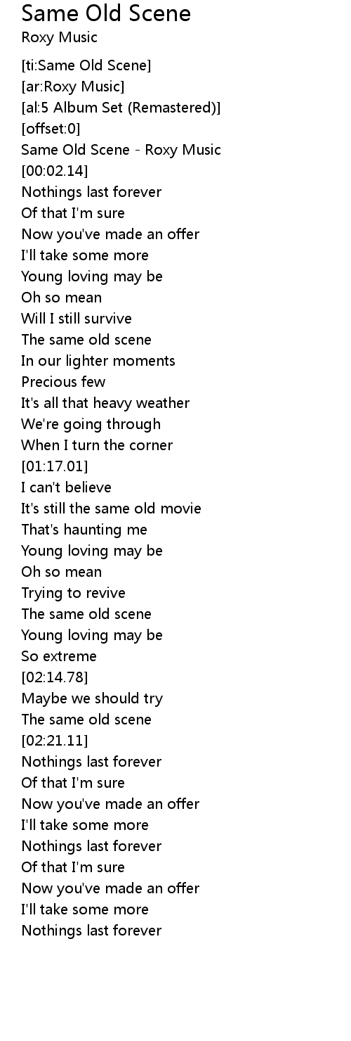 [00:00.88] Same Old Scene - Roxy Music