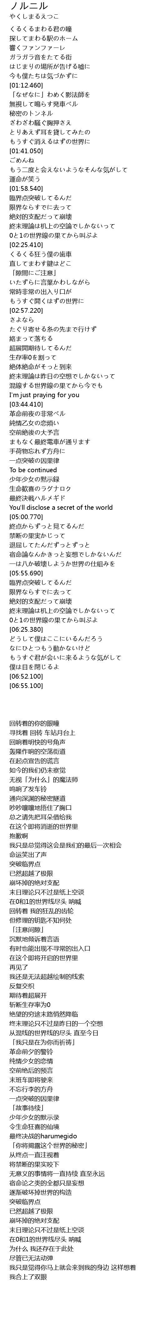 | [06:15.970] | 在0和1的世界线尽头 呐喊 |