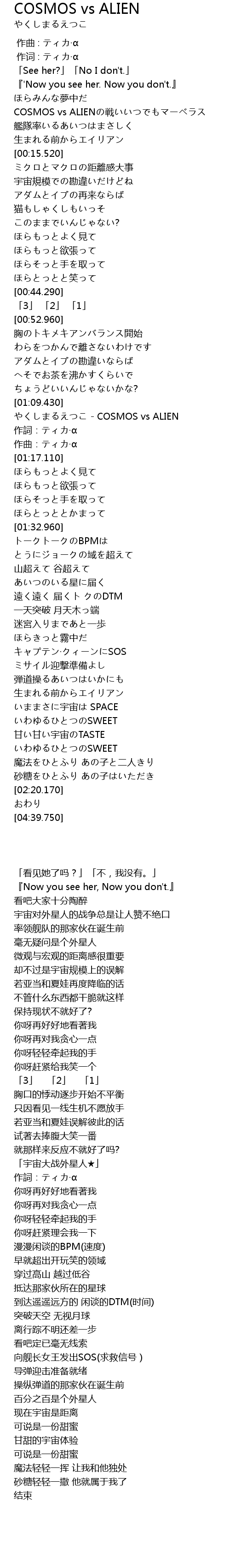 | [01:10.320] | やくしまるえつこ - COSMOS vs ALIEN |