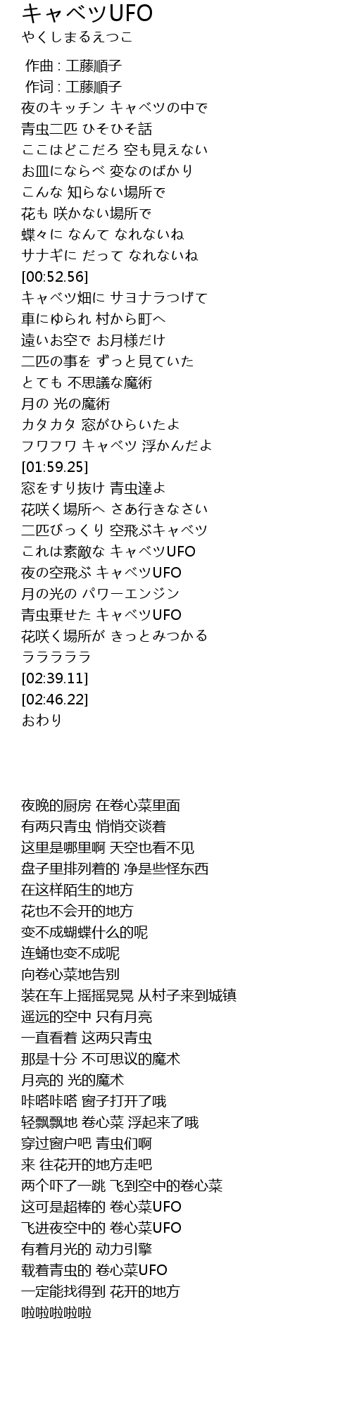 | [02:23.34] | 青虫乗せた キャベツUFO |