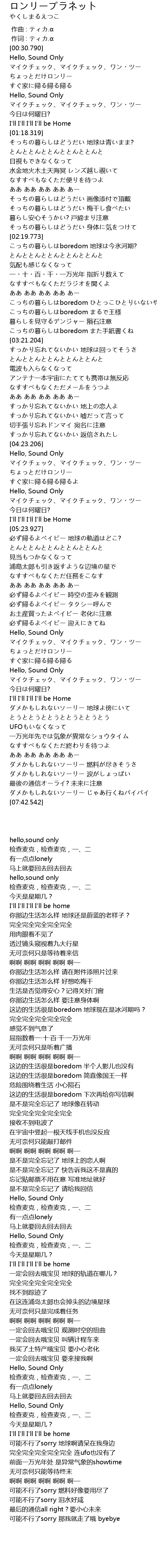 | [00:01.00] | 作词 : ティカ.α |