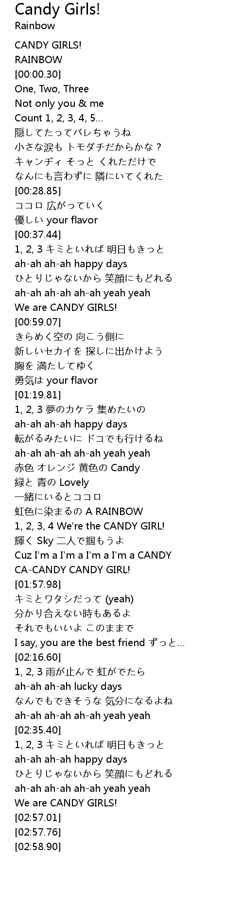 | [01:48.42] | 1, 2, 3, 4 We're the CANDY GIRL! |