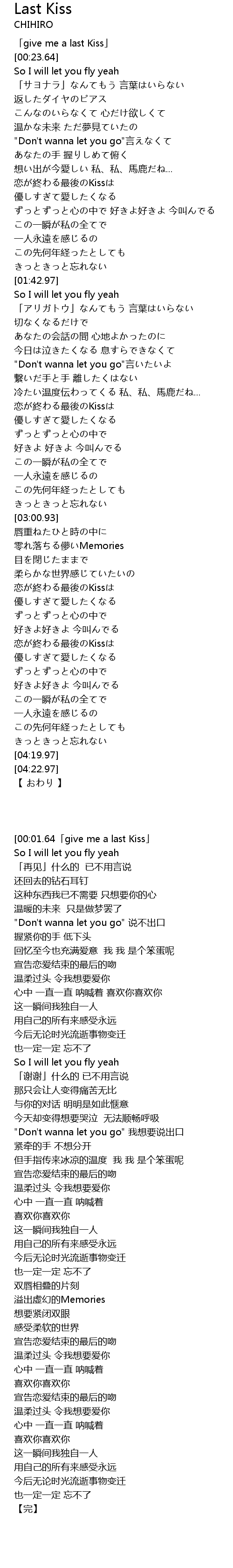 | [03:20.83] | liàn zhōng zuì hòu Kiss |