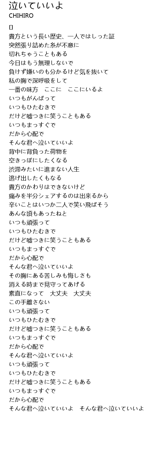 | [04:16.469] | そんな君へ泣いていいよ そんな君へ泣いていいよ |