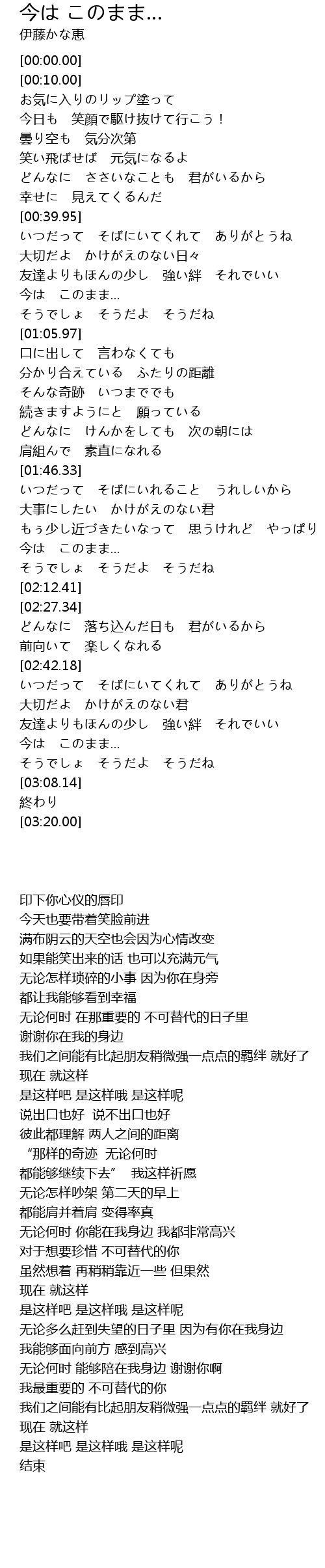| [02:42.69] | いつだって そばにいてくれて ありがとうね |