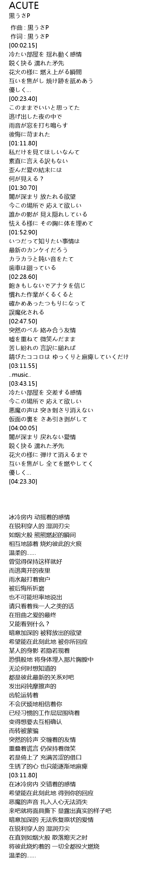 | [00:00.671] | 作词 : 黒うさP |