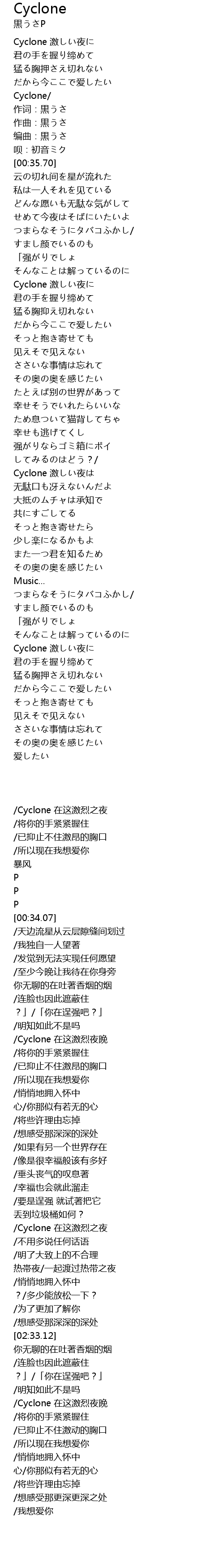 作词:黒うさ |