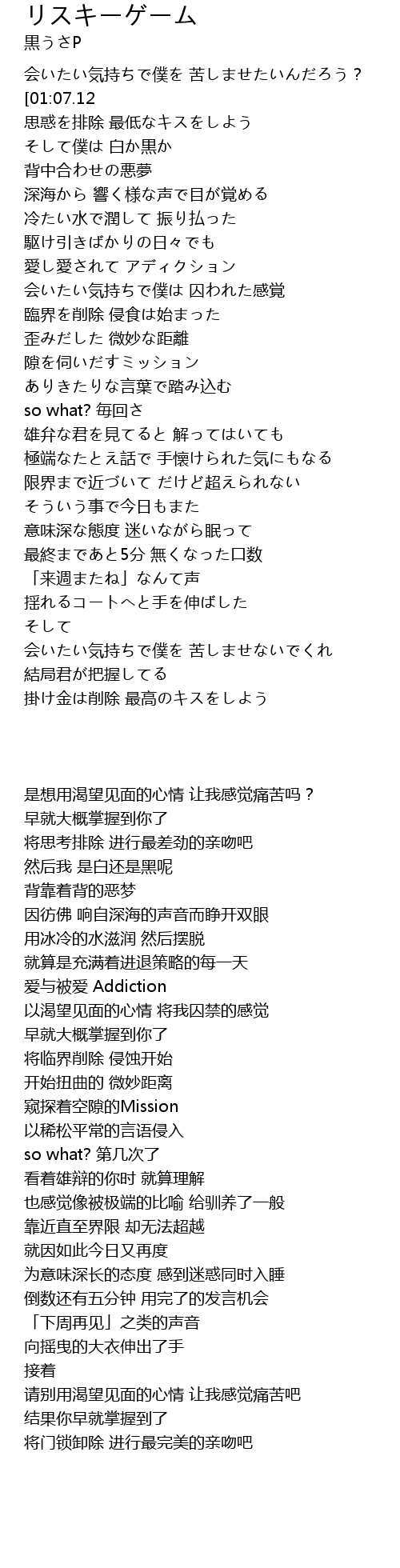 | 歌曲 | リスキーゲーム |