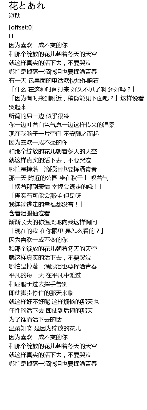 | [02:06.864] | 和那个绽放的花儿朝着冬天的天空 |