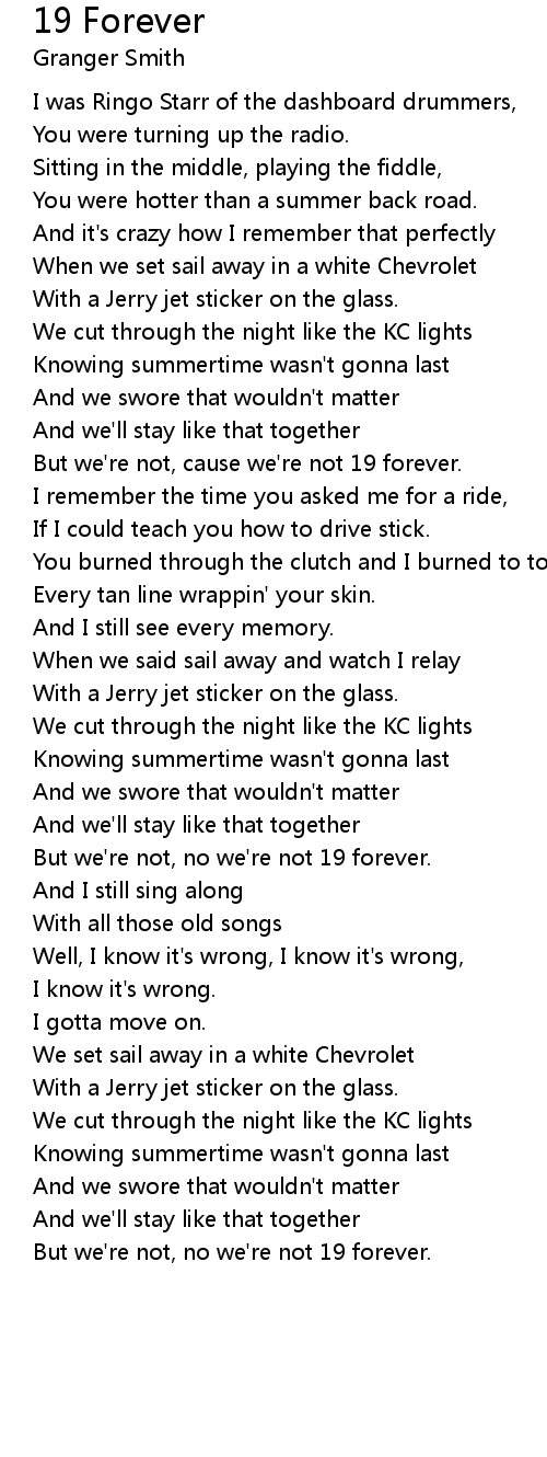 When we set sail away in a white Chevrolet |