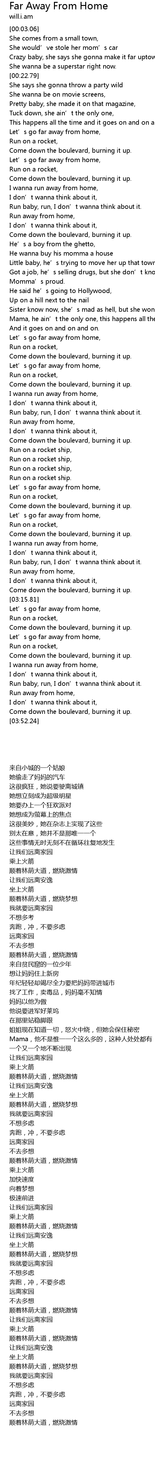 | [03:19.56] | 让我们远离家园 |