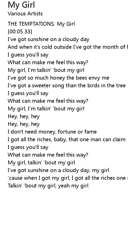 My girl, talkin' 'bout my girl |