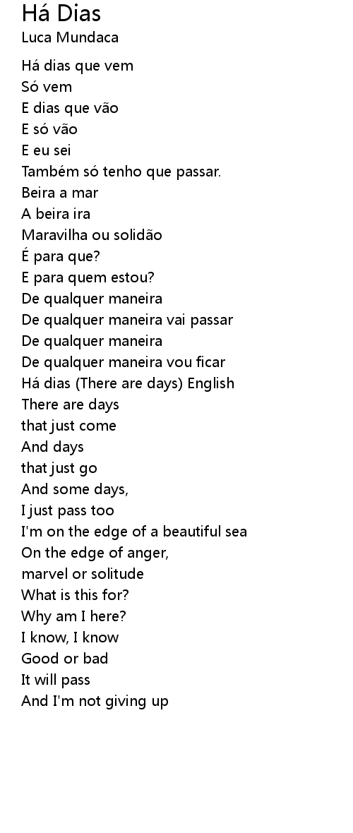 | Há dias There are days English | |