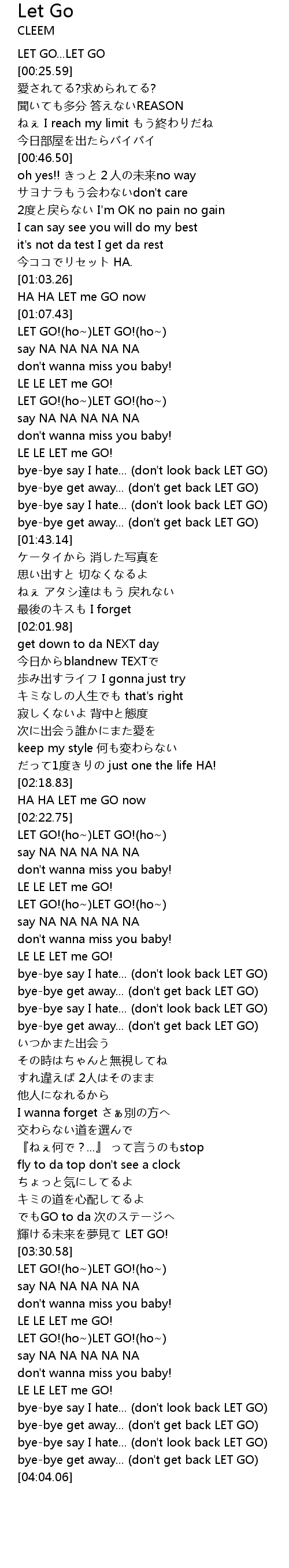 | [01:34.97] | bye-bye say I hate... (don't look back LET GO) |