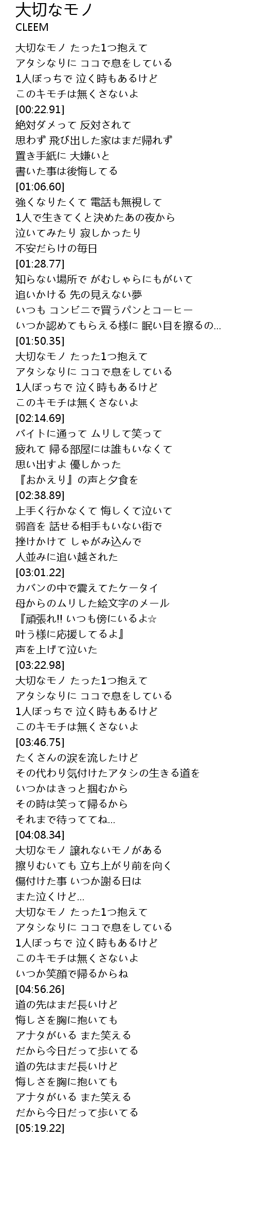 | [03:24.11] | 大切なモノ たった1つ抱えて |