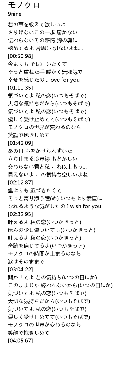 | [02:53.44] | モノクロの時間が止まるのなら |
