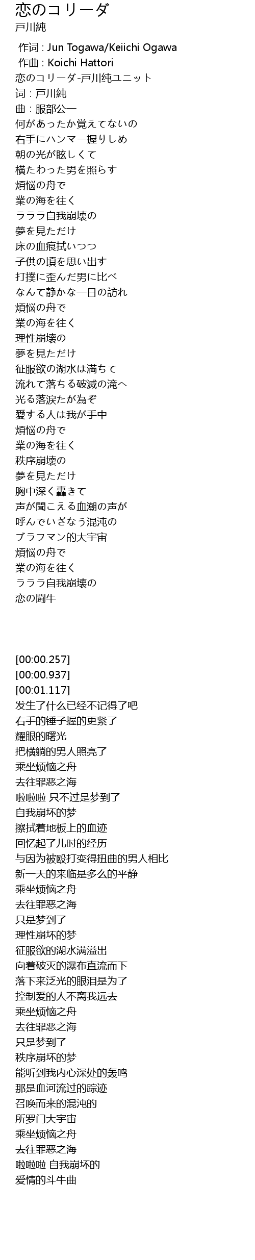| [00:00.257] | 恋のコリーダ-戸川纯ユニット |