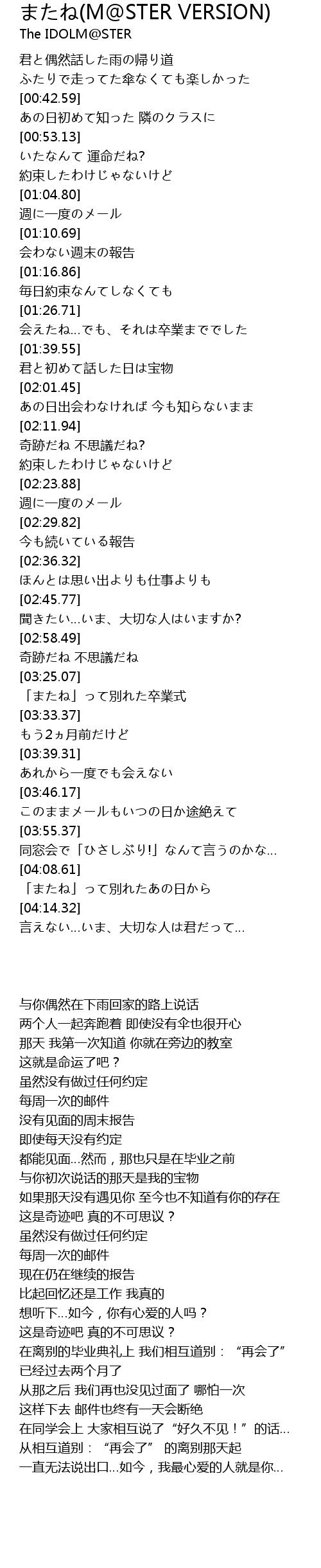 | [03:29.00] | 「またね」って別れた卒業式 |