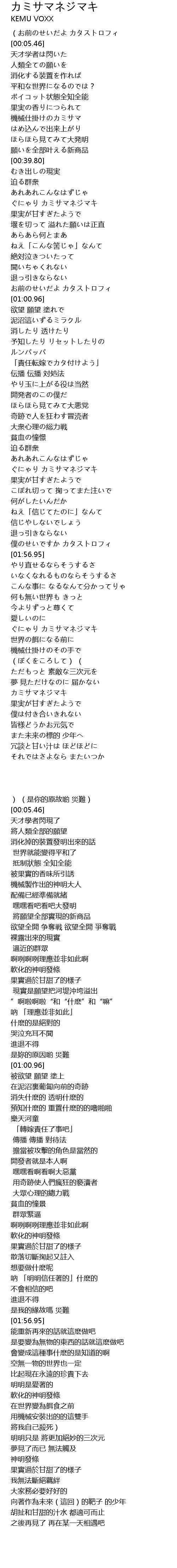 | [00:45.52] | ぐにゃり カミサマネジマキ |