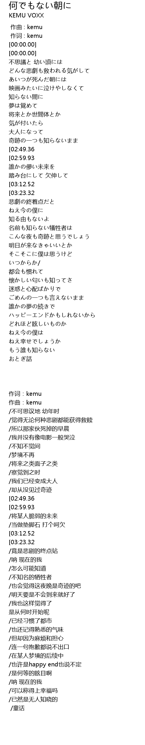 | [00:00.00] | 作曲:kemu |