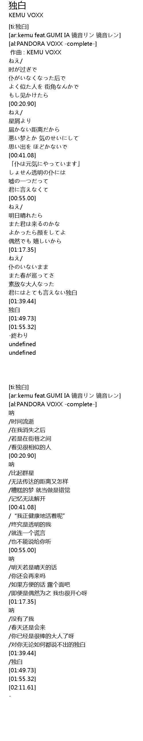 | [ar:kemu feat.GUMI IA 镜音リン 镜音レン] | |