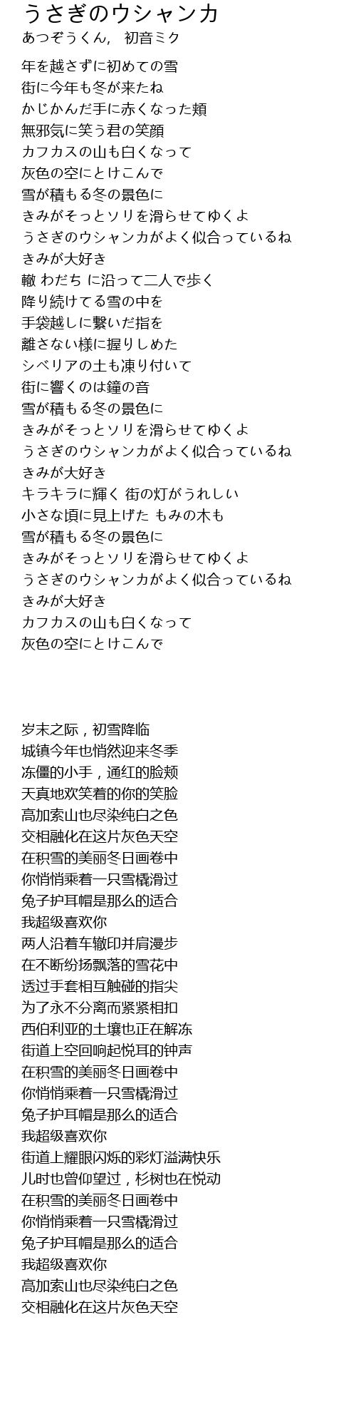 | [03:32.62] | カフカスの山も白くなって |