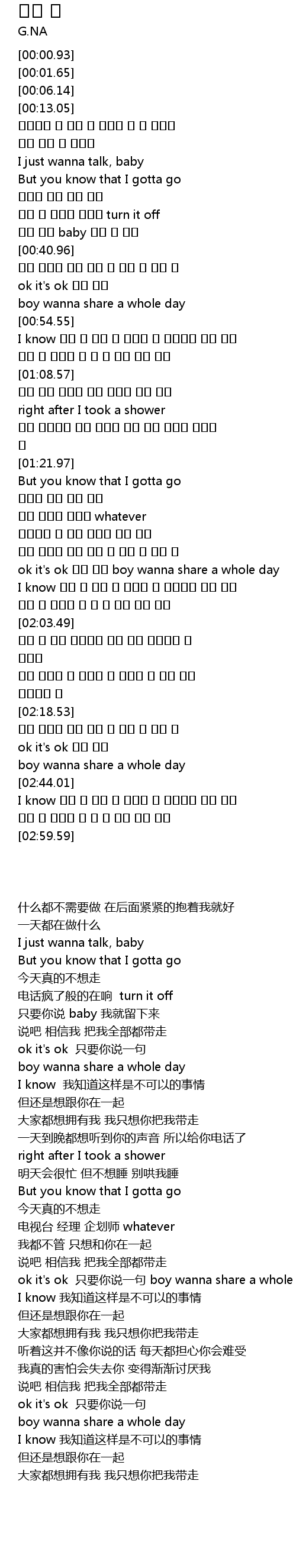 | [01:42.67] | ok it's ok 말만 해줘 boy wanna share a whole day |