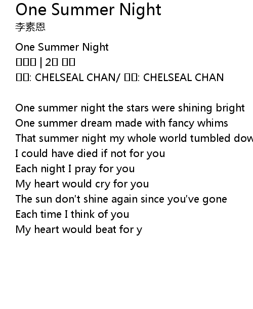 | 작사: CHELSEAL CHAN/ 작곡: CHELSEAL CHAN | |