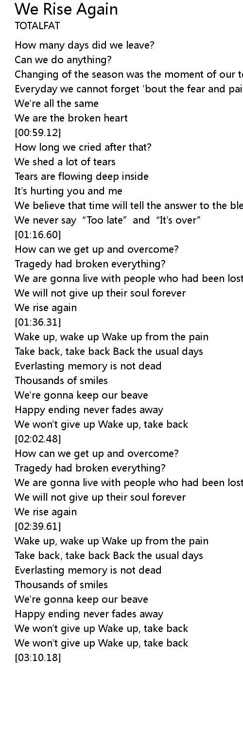 | [00:50.79] | Everyday we cannot forget ' bout the fear and pain |