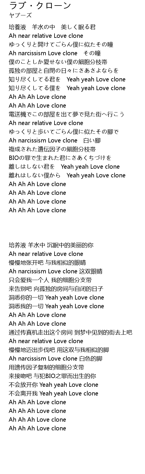 | [02:58.38] | lí pú Yeah yeah Love clone |