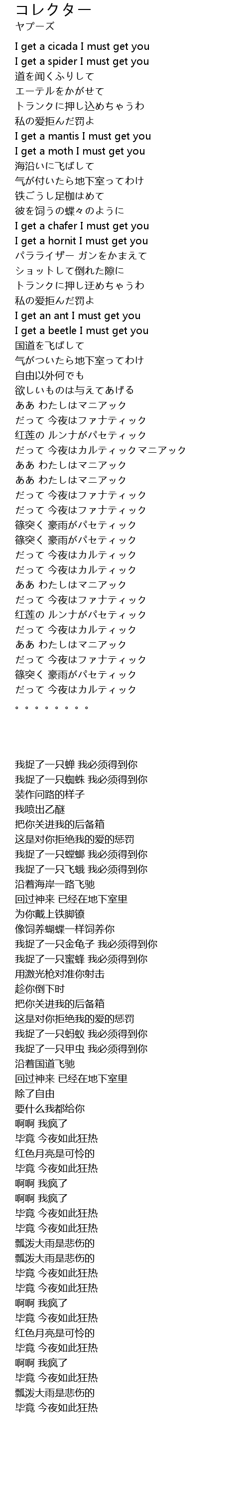 | [01:01.190] | 我捉了一只金龟子 我必须得到你 |