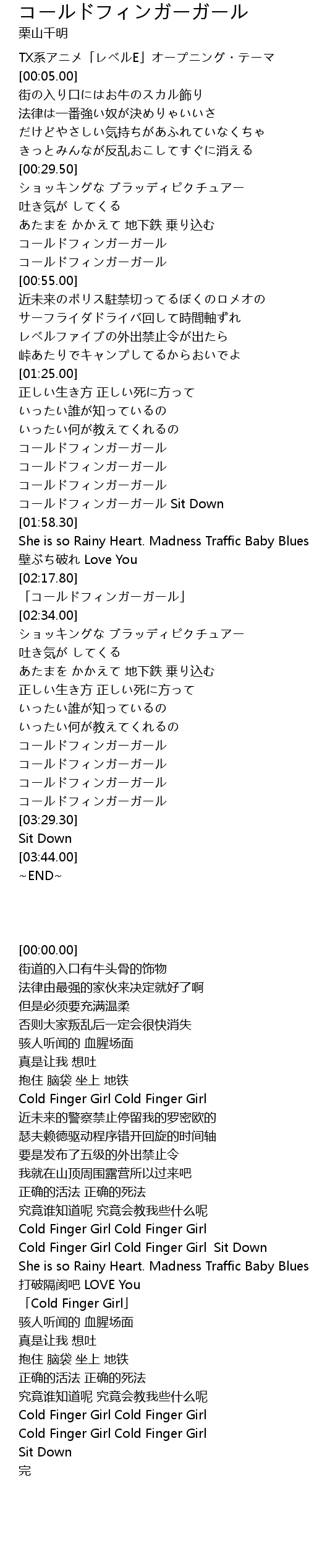| [02:22.00] | 「Cold Finger Girl」 |