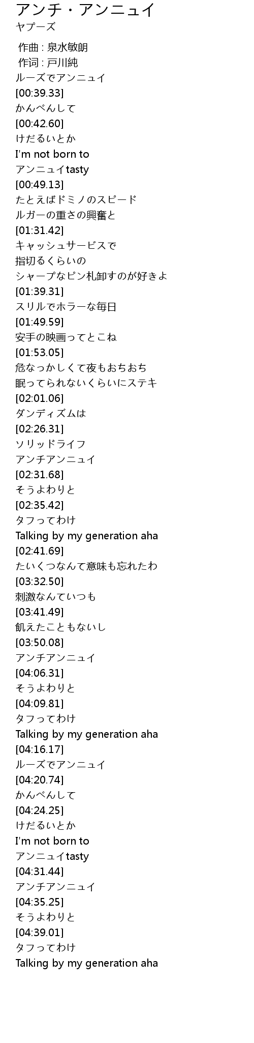 | [01:53.89] | 危なっかしくて夜もおちおち |