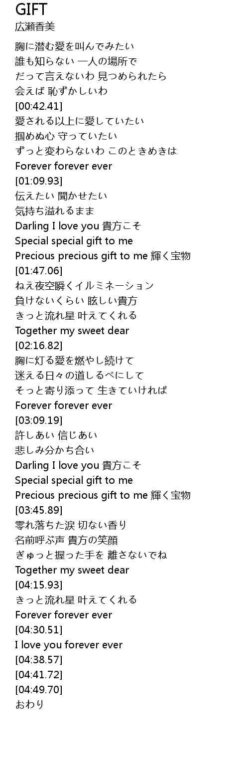 | [01:36.17] | Precious precious gift to me 輝く宝物 |