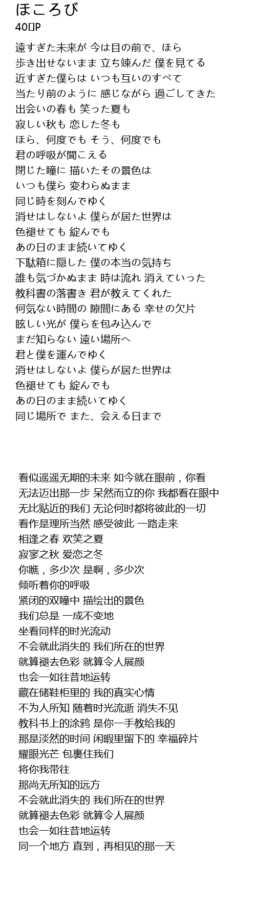 | [01:41.020] | 消せはしないよ 僕らが居た世界は |
