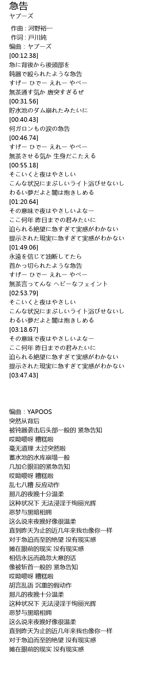 | [02:40.86] | 像被斩首一般的 紧急告知 |