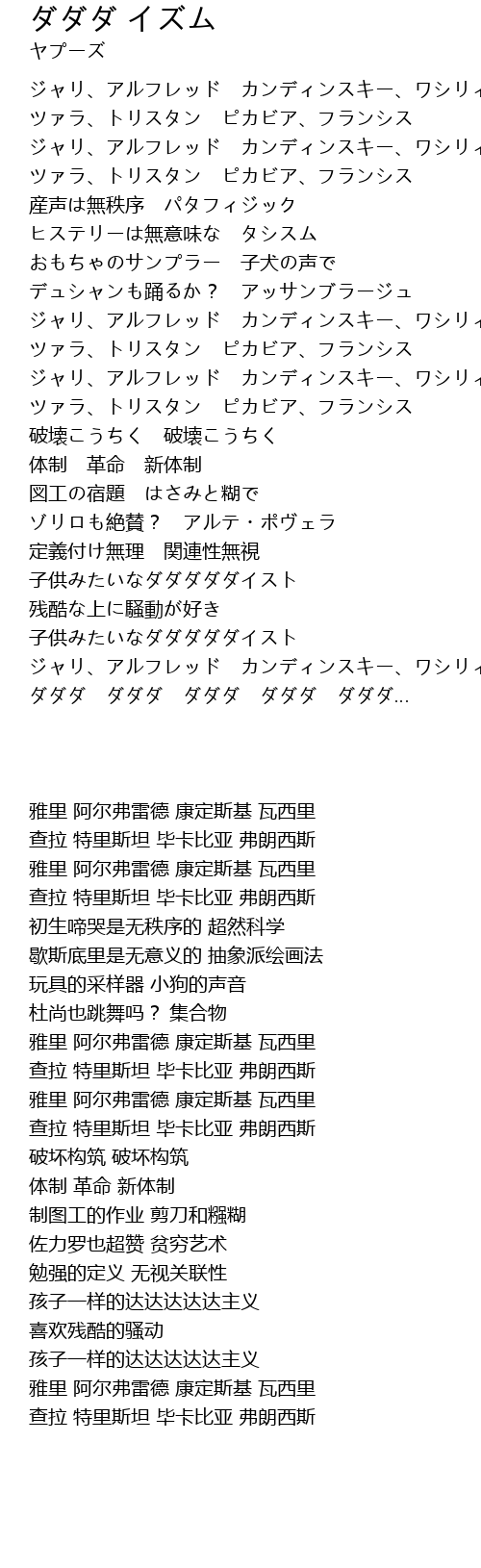 | [00:40.18] | ツァラ、トリスタン ピカビア、フランシス |