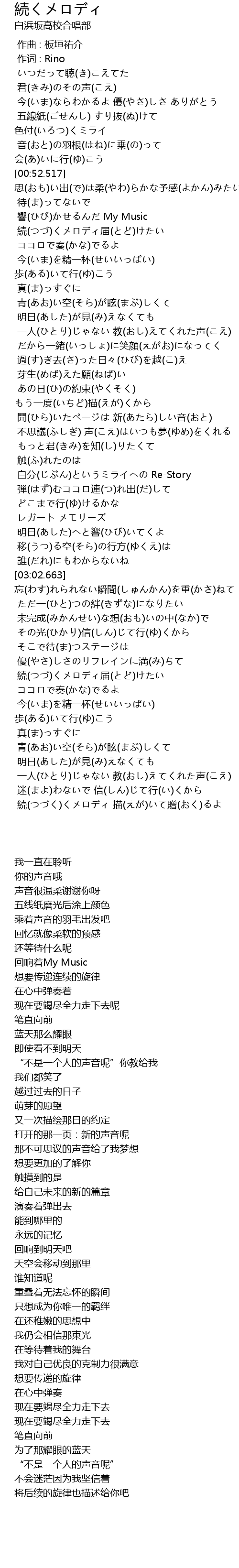 | [03:52.441] | 続(つづ)くメロディ届(とど)けたい |