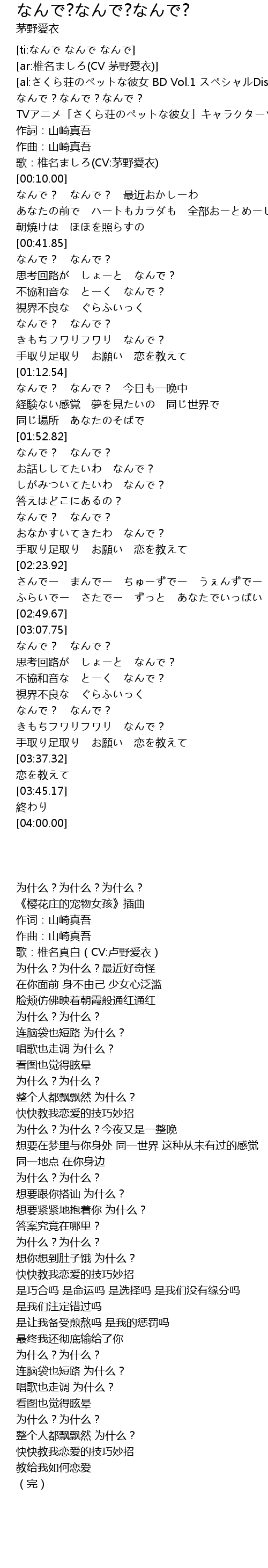 | [00:02.00] | TVアニメ「さくら荘のペットな彼女」キャラクターソング |