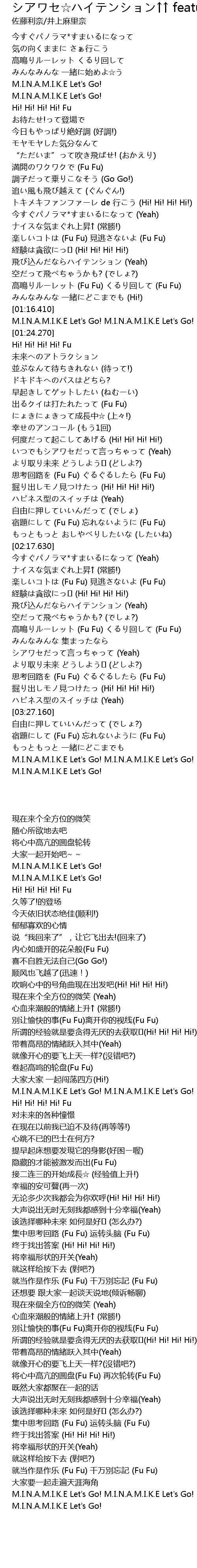 | [03:38.580] | M.I.N.A.M.I.K.E Let's Go! M.I.N.A.M.I.K.E Let's Go! |