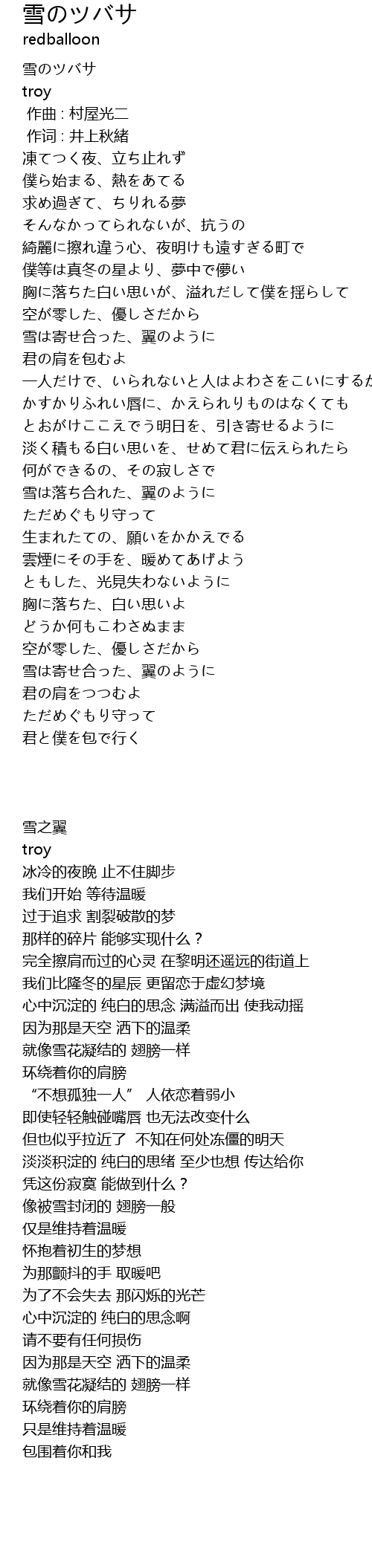 | [02:15.90] | 雪は落ち合れた、翼のように |