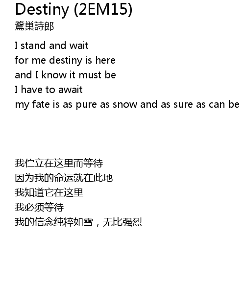 | 歌曲 | Destiny (2EM15) |