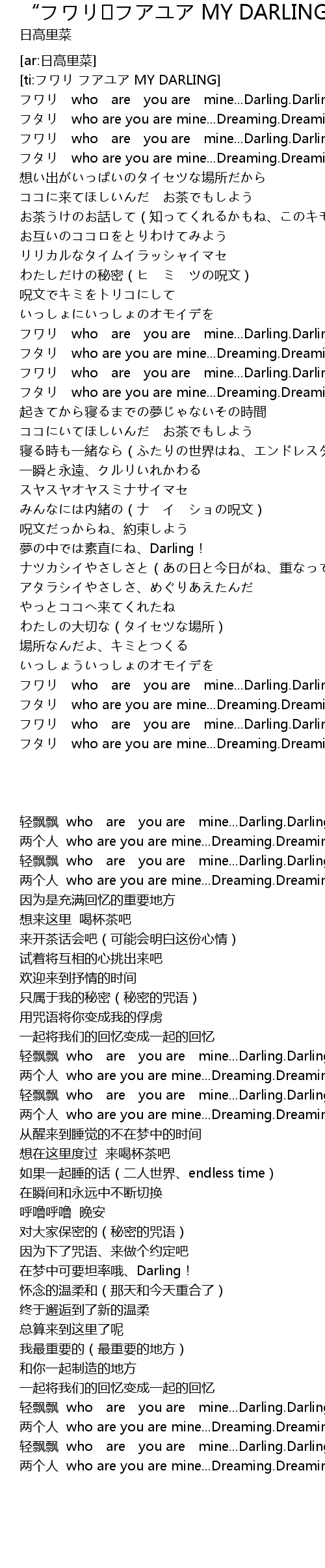 | [00:04.88] | フワリ who are you are mine...Darling.Darling |