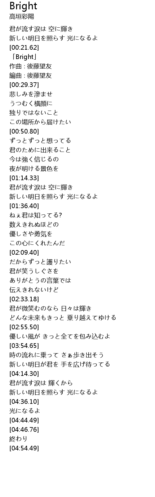 | [00:23.37] | 「Bright」 |