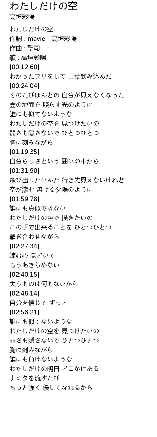 | [00:00.85] | わたしだけの空 |